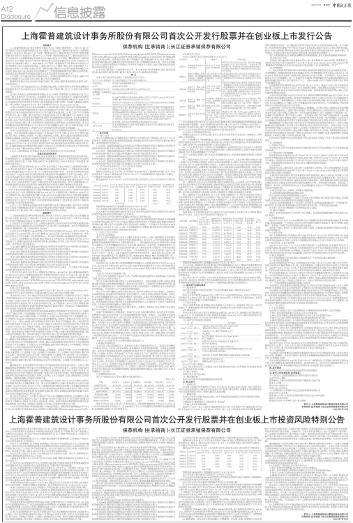 上海霍普建筑设计事务所股份有限公司首次公开发行股票并在创业板上市投资风险特别公告
