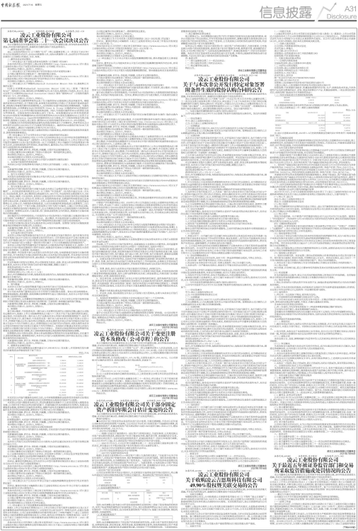 具体内容详见公司刊登在上海证券交易所网站(http://www.sse.com.cn)的《凌云工业股份有限公司关于部分固定资产折旧年限会计估计变更的公告》。