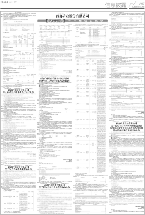 证券代码:601168 证券简称:西部矿业 公告编号:2021-033