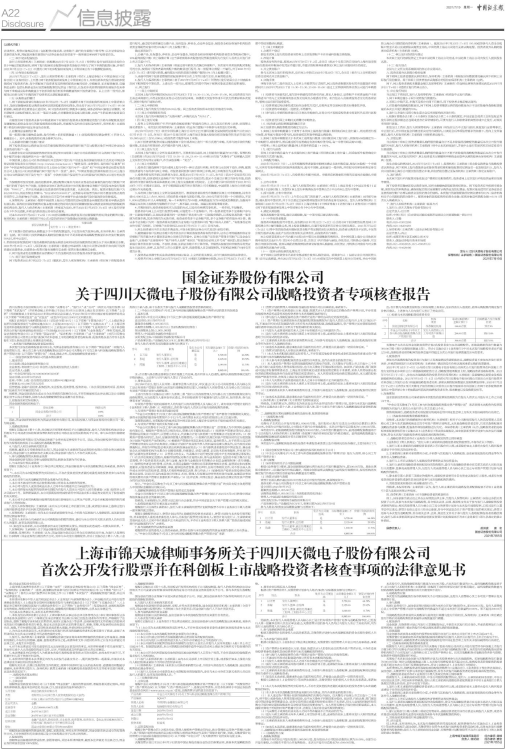 关于四川天微电子股份有限公司战略投资者专项核查报告