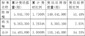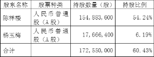 本次权益变动前,信息披露义务人陈祥楼先生及其配偶杨玉梅女士合计持有公司股份172,550,000股,占公司总股本的60.43%(总股本数量为285,530,703股,已剔除公司回购专用账户中的股份数量5,538,552股)。
