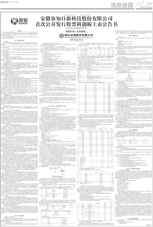 安徽容知日新科技股份有限公司(以下简称“容知日新”、“公司”、“本公司”或“发行人”)股票将于2021年7月26日在上海证券交易所上市。本公司提醒投资者应充分了解股票市场风险及本公司披露的风险因素,在新股上市初期切忌盲目跟风“炒新”,应当审慎决策、理性投资。