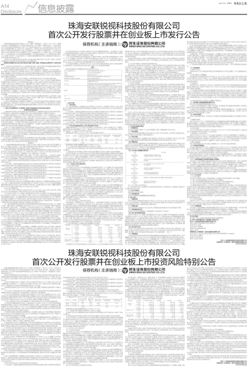 珠海安联锐视科技股份有限公司(以下简称“安联锐视”、“发行人、“公司”)首次公开发行股票并在创业板上市申请已经深圳证券交易所(以下简称“深交所”)创业板上市委员会审议通过,并已经中国证券监督管理委员会(以下简称“中国证监会”)同意注册(证监许可[2021]2114号)。