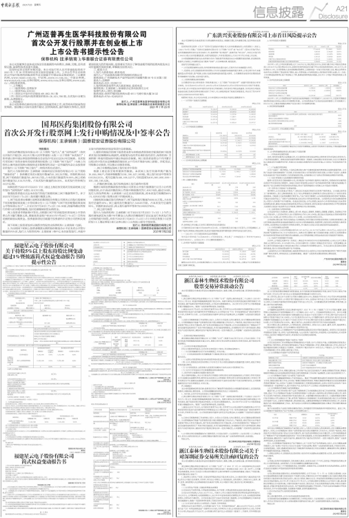 1、网下投资者应根据《国邦医药集团股份有限公司首次公开发行股票网下初步配售结果及网上中签结果公告》(以下简称“《网下初步配售结果及网上中签结果公告》”),于2021年7月26日(T+2日)16:00前,按最终确定的发行价格与初步配售数量,及时足额缴纳新股认购资金。