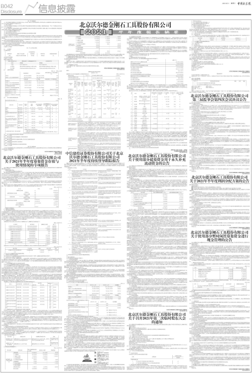 具体内容详见公司同日在上海证券交易所网站(http://www.sse.com.cn)披露的《北京沃尔德金刚石工具股份有限公司2021年半年度报告》及《北京沃尔德金刚石工具股份有限公司2021年半年度报告摘要》。