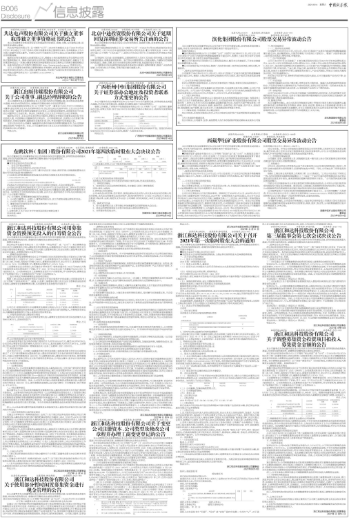 浙江和达科技股份有限公司关于召开2021年第一次临时股东大会的通知