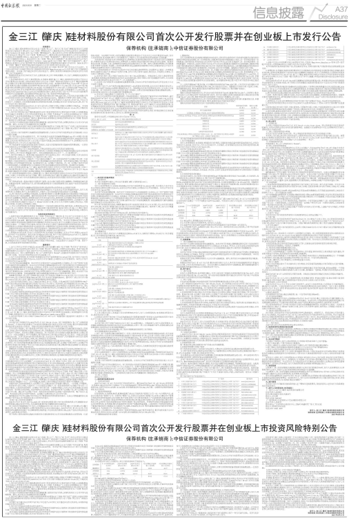 金三江(肇庆)硅材料股份有限公司首次公开发行股票并在创业板上市投资风险特别公告