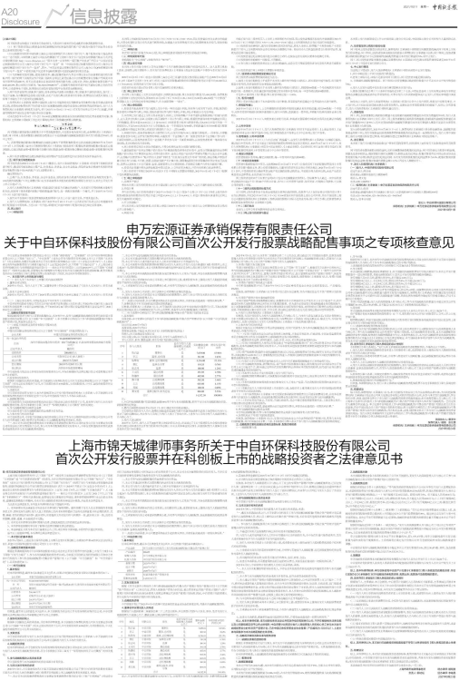 关于中自环保科技股份有限公司首次公开发行股票战略配售事项之专项核查意见
