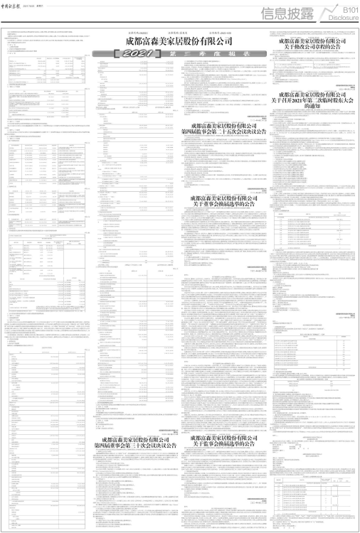 经审核,监事会认为董事会编制和审议成都富森美家居股份有限公司2021年第三季度报告的程序符合法律、行政法规及中国证监会的规定,报告内容真实、准确、完整地反映了上市公司的实际情况,不存在任何虚假记载、误导性陈述或者重大遗漏