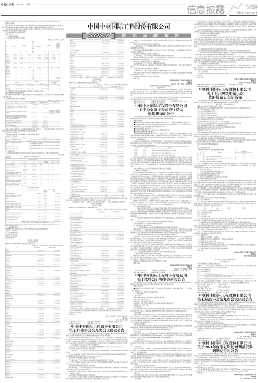 证券代码:600970 证券简称:中材国际 公告编号:临2021-088