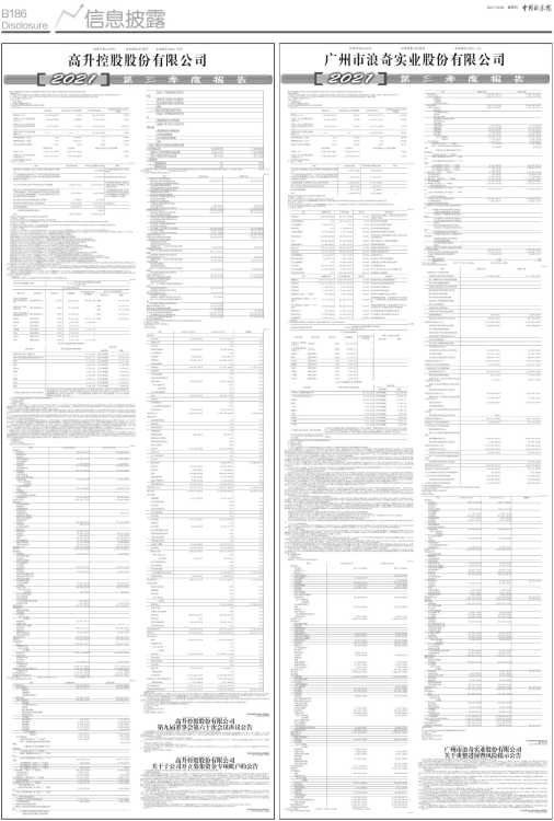 具体内容详见公司同日在《中国证券报》《上海证券报》《证券时报》《证券日报》及巨潮资讯网(www.cninfo.com.cn)上刊登的《高升控股股份有限公司2021年第三季度报告》。