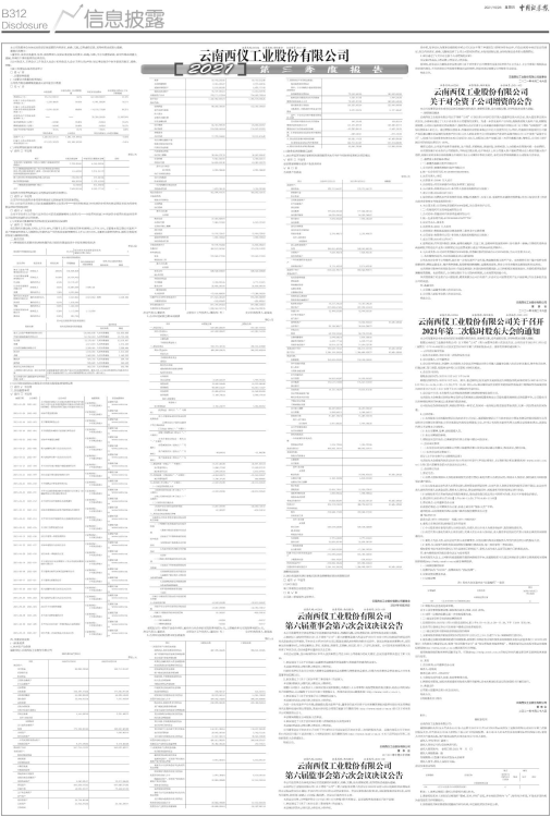云南西仪工业股份有限公司(以下简称“公司”)第六届董事会第六次会议于2021年10月15日以电邮或书面送达的方式发出会议召开通知,于2021年10月26日在公司以现场及通讯表决相结合的方式召开。会议应参加表决董事9名,实际参加表决董事9名,分别是董绍杰、李红、张富昆、贾葆荣、王晓畅、吴以国、张宁、于定明、陈旭东。公司监事及高级管理人员列席了本次会议,会议由董事长董绍杰先生主持。