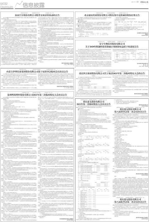 1、 重庆港九股份有限公司2021年第一次临时股东大会决议;