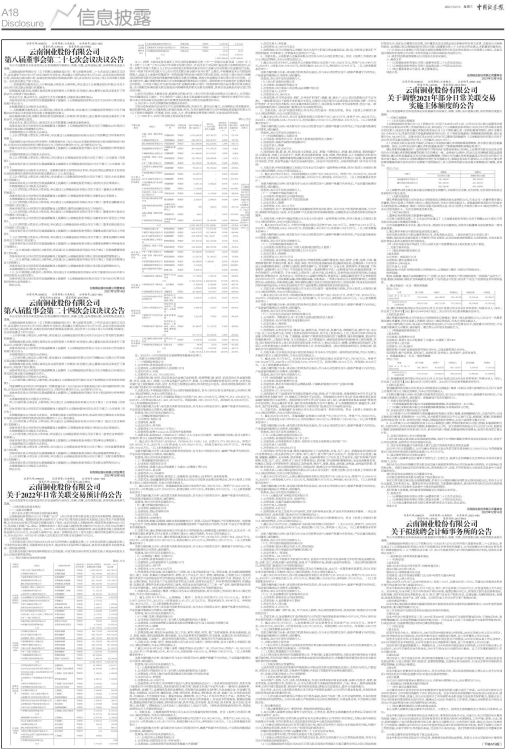 具体内容详见公司在指定信息披露媒体上披露的《云南铜业股份有限公司关于2022年日常关联交易预计的公告》;