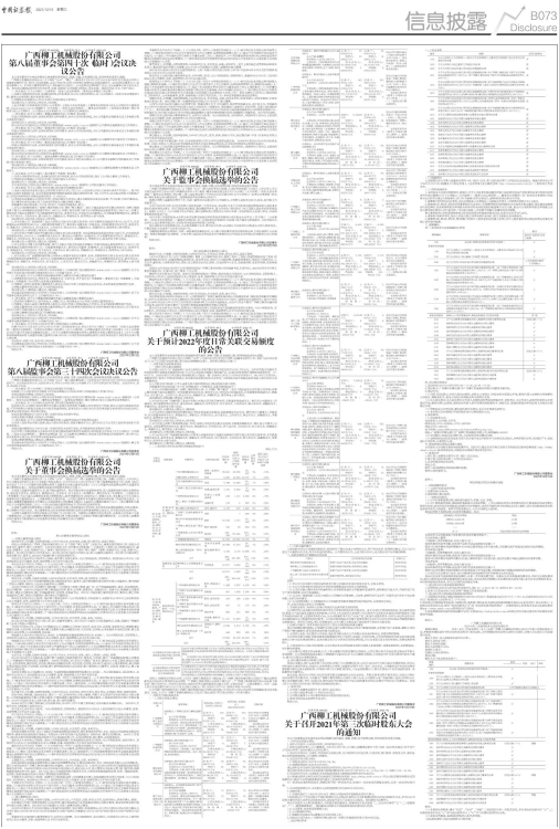 广西柳工机械股份有限公司(以下简称“公司”、“柳工”)董事会于2021年12月10日以电子邮件方式发出召开第八届董事会第四十次(临时)会议的通知,会议于2021年12月13日在柳工总部6E会议室如期召开。会议应到会董事11人,实到会董事11人(其中独立董事陈雪萍女士采取通讯方式参会)。公司监事会监事列席了会议。会议由董事长曾光安先生主持。本次会议通知及召开符合有关法律、法规、规章及《公司章程》的规定,合法有效。经会议审议,作出了如下决议: