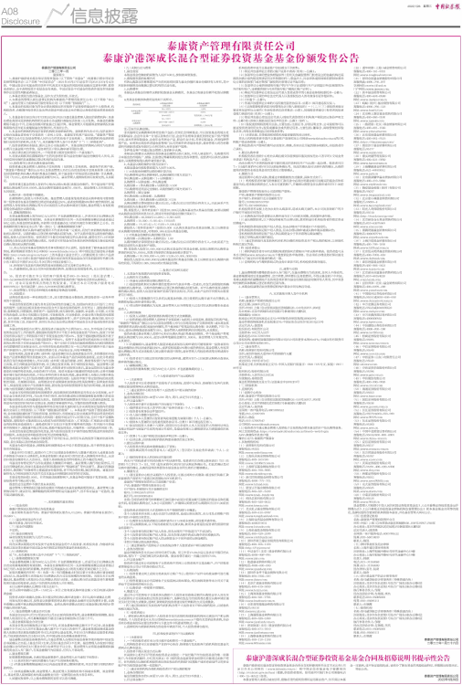 泰康沪港深成长混合型证券投资基金基金合同及招募说明书提示性公告