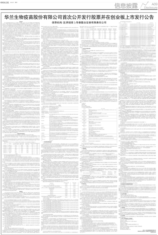 华兰生物疫苗股份有限公司首次公开发行股票并在创业板上市发行公告