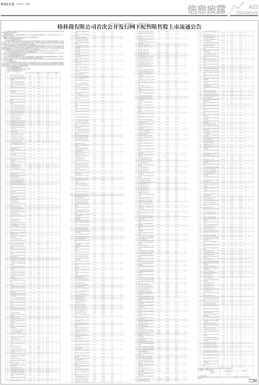 本次上市流通的限售股为公司首次公开发行网下配售限售股,限售股股东数量为560名,均为公司首次公开发行股票时参与网下向符合条件的投资者询价配售并中签的配售对象,锁定期为自公司股票上市之日起六个月,该部分限售股股东对应的股份数量为10,237,709股,占公司股本总数的0.4097%,具体详见公司2021年8月13日在上海证券交易所网站上披露的《格科微有限公司首次公开发行股票并在科创板上市发行结果公告》。