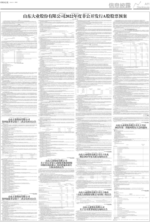 1、山东大业股份有限公司2022年度非公开发行A股股票相关事项已经2022年2月16日召开的第四届董事会第十三次会议审议通过。本次非公开发行股票尚需获得公司股东大会审议通过以及中国证监会核准后方可实施。