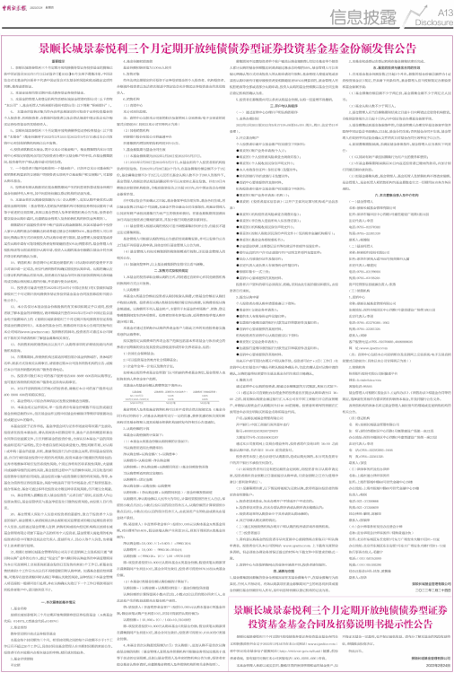 11、 投资者可阅读刊登在2022年2月24日《中国证券报》的《景顺长城景泰悦利三个月定期开放纯债债券型证券投资基金基金合同及招募说明书提示性公告》。