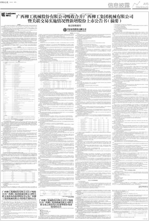 中登公司已受理上市公司本次向柳工集团、招工服贸、双百基金、国家制造业基金、诚通工银、建信投资、广西国企改革基金、常州嘉佑及中证投资发行991,782,278股股份登记申请材料,相关股份登记到账后将正式列入上市公司的股东名册。
