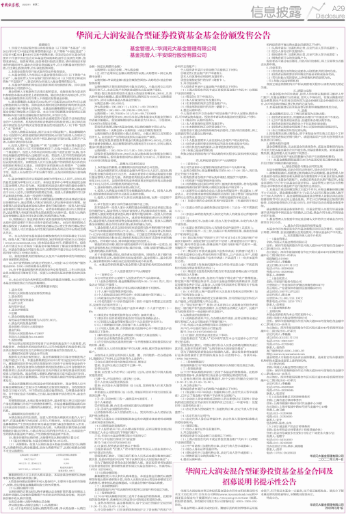 3、本基金管理人为华润元大基金管理有限公司(以下简称“本公司”),基金托管人为平安银行股份有限公司(以下使用全称或其简称“平安银行”),登记机构为华润元大基金管理有限公司。