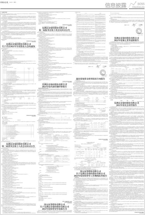 芜湖富春染织股份有限公司(以下简称“公司”或“富春染织”)2021年度社会责任报告(以下简称“本报告”)反映了公司2021年在生产经营过程中对公司股东、职工和社会等利益相关者承担社会责任的总体情况。本报告根据上海证券交易所发布的《关于加强上市公司社会责任承担工作暨发布〈上海证券交易所上市公司环境信息披露指引〉的通知》、《〈公司履行社会责任的报告〉编制指引》的有关规定,结合公司在履行社会责任方面的具体情况编制而成。
