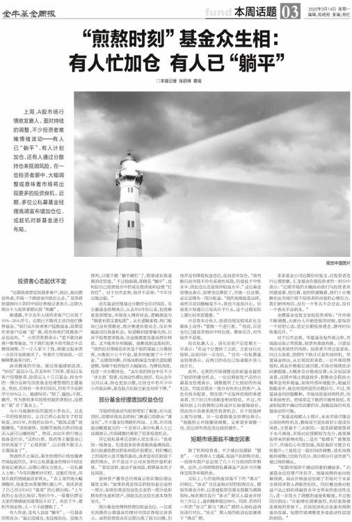 视觉中国图片东方基金蒋茜: 以“弱者思维”寻找安全边际08基金人物05基金人物兴证全球基金谢治宇: 投资是收获企业价值的过程04财富视野东方红资产管理江琦: 前瞻性布局医药行业02基金新闻放宽限购传递积极信号 公募基金积极作为“煎熬时刻”基金众生相: 有人忙加仓 有人已“躺平”