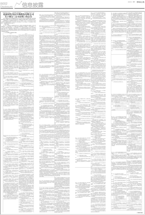 北海国发川山生物股份有限公司(以下简称“公司”)2022年3月13日召开的第十届董事会第十五次会议,审议通过了《关于修订〈公司章程〉的议案》。现将相关事项公告如下:
