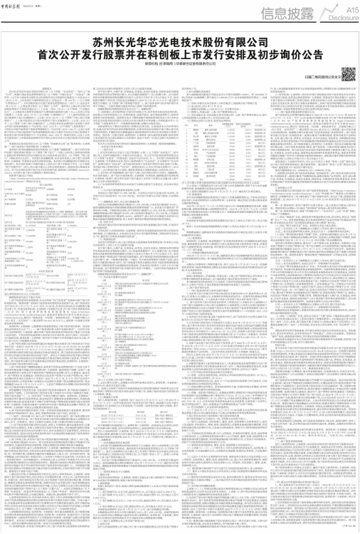 8、投资风险特别公告:初步询价结束后,发行人和主承销商确定的发行价格超过网下投资者剔除最高报价部分后剩余报价的中位数和加权平均数,以及公募产品、社保基金和养老金剩余报价的中位数和加权平均数的孰低值的,将在申购前发布的《苏州长光华芯光电技术股份有限公司首次公开发行股票并在科创板上市投资风险特别公告》(以下简称“《投资风险特别公告》”)中说明相关情况。