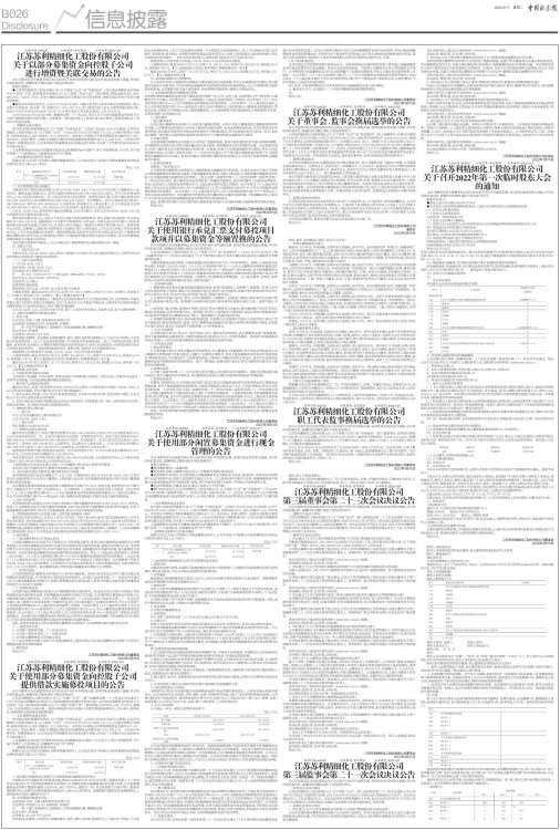 证券代码:603585 证券简称:苏利股份 公告编号:2022-015