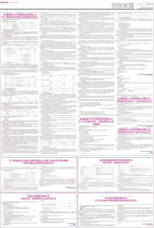 常州腾龙汽车零部件股份有限公司(以下简称“公司”)于2022年3月16日召开第四届董事会第十三次会议、第四届监事会第十次会议,分别审议并通过了《关于变更部分募集资金投资项目的议案》。根据《上市公司监管指引第2号——上市公司募集资金管理和使用的监管要求》、《上海证券交易所股票上市规则》等有关规定,现将相关事项公告如下: