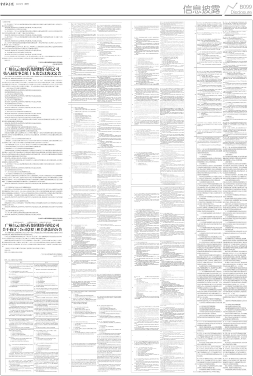 广州白云山医药集团股份有限公司(“本公司”或“公司”)第八届董事会第十九次会议于2022年3月18日以现场形式召开,审议通过了关于修订《公司章程》相关条款的议案。