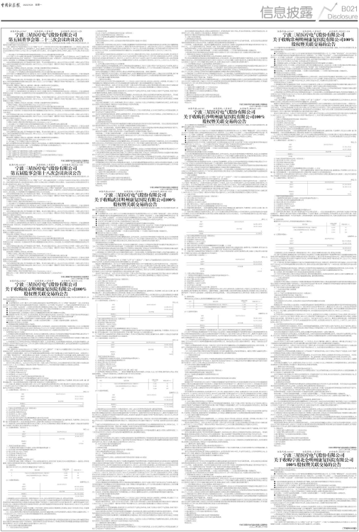 宁波三星医疗电气股份有限公司(以下简称“公司”)于2022年3月25日召开第五届董事会第二十三次会议,会议以现场方式召开。会议应到董事8人,实到董事8人,会议由董事长沈国英女士主持,公司监事和其他高级管理人员列席了会议,会议的召集和召开符合《公司法》和《公司章程》的有关规定。经与会董事认真审议并表决,通过了以下议案,形成决议如下: