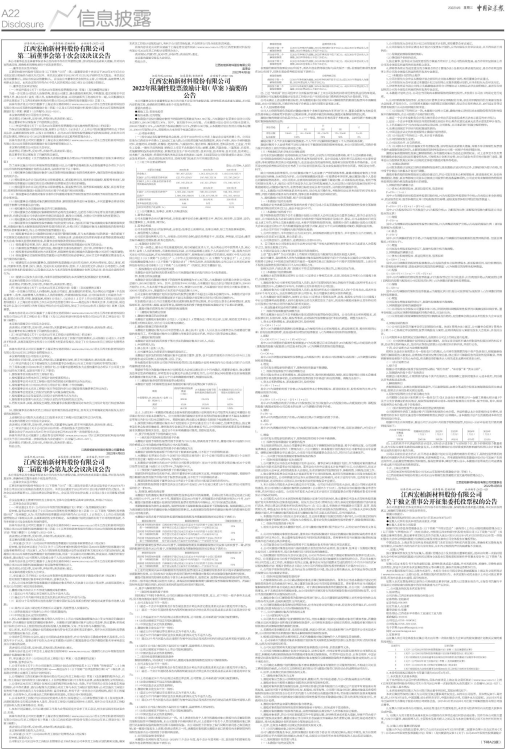 具体内容详见公司同日披露于上海证券交易所网站(www.sse.com.cn)的《江西宏柏新材料股份有限公司2022年限制性股票激励计划(草案)》《江西宏柏新材料股份有限公司2022年限制性股票激励计划(草案)摘要》(公告编号:2022-024)。