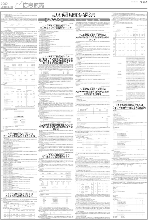 具体内容详见公司同日在上海证券交易所网站(www.sse.com.cn)披露的《三人行:2021年年度报告》及《三人行:2021年年度报告摘要》。