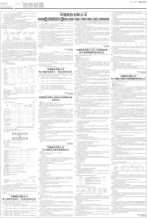 证券代码:600642 证券简称:申能股份 公告编号:2022-015
