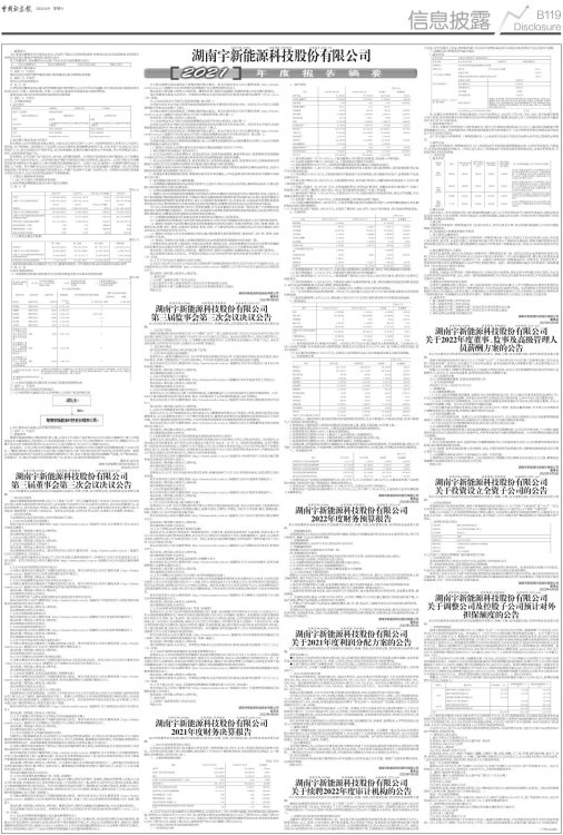 湖南宇新能源科技股份有限公司(以下简称“公司”)第三届董事会第三次会议于2022年4月7日在公司会议室以现场与通讯相结合的方式召开,会议通知于2022年3月18日以通讯方式发出,会议应出席董事7人,实际出席董事7人,其中陈海波、李国庆、陈爱文、曾斌以通讯方式参加。会议由董事长胡先念先生召集并主持,公司监事、高级管理人员列席了本次会议。本次会议的召集、召开符合有关法律、法规和《公司章程》的规定。