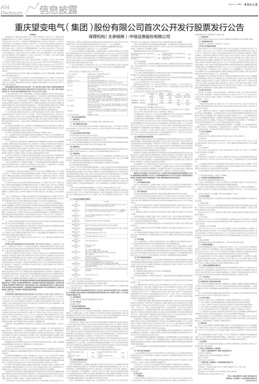 重庆望变电气(集团)股份有限公司(以下简称“望变电气”或“发行人”)根据中国证券监督管理委员会(以下简称“中国证监会”)《关于进一步推进新股发行体制改革的意见》(证监会公告〔2013〕42号)、《证券发行与承销管理办法》(证监会令〔第144号〕)、《首次公开发行股票并上市管理办法》(证监会令〔第173号〕)、《首次公开发行股票时公司股东公开发售股份暂行规定》(证监会公告〔2014〕11号)、《首次公开发行股票承销业务规范》(中证协发〔2018〕142号)、《首次公开发行股票配售细则》(中证协发〔2018〕142号)、《首次公开发行股票网下投资者管理细则》(中证协发〔2018〕142号)、《上海市场首次公开发行股票网上发行实施细则》(上证发〔2018〕40号,以下简称“《网上发行实施细则》”)及《上海市场首次公开发行股票网下发行实施细则》(上证发〔2018〕41号,以下简称“《网下发行实施细则》”)等相关规定组织实施首次公开发行股票。
