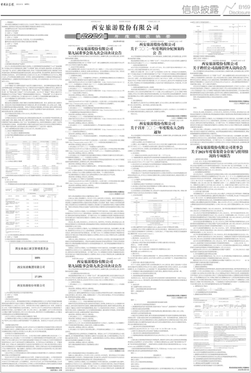 证券代码:000610 证券简称:西安旅游 公告编号:2022-13号