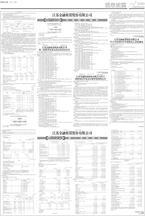江苏金融租赁股份有限公司(以下简称“公司”)第三届董事会第九次会议的通知于2022年4月11日以书面形式发出。本次会议于2022年4月21日以现场与通讯相结合的方式在公司召开。会议应出席董事11人,实际出席董事11人,会议由董事长熊先根先生主持。本次会议的召集召开程序符合《公司法》《公司章程》及《董事会议事规则》等有关规定。本次会议审议通过了以下议案: