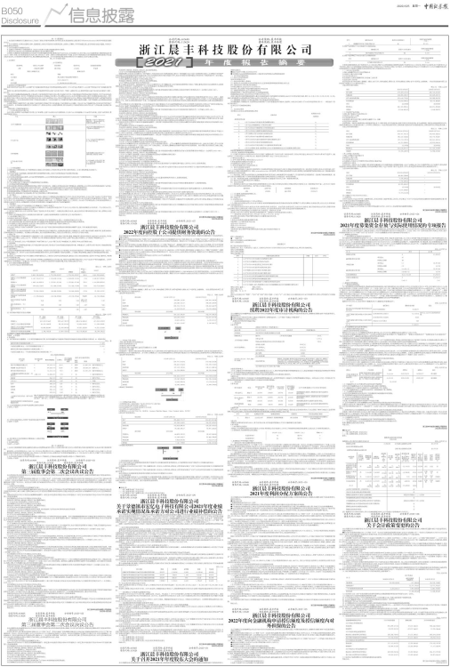 具体内容详见公司同日于指定信息披露媒体披露的《浙江晨丰科技股份有限公司2021年年度报告》《浙江晨丰科技股份有限公司2021年年度报告摘要》,供投资者查阅。