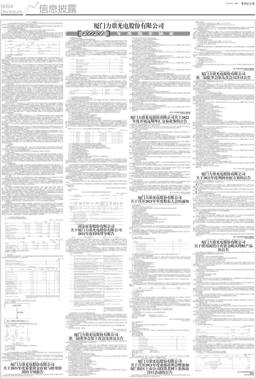 具体内容详见公司于本公告日在上海证券交易所网站(www.sse.com.cn)披露的《厦门力鼎光电股份有限公司2021年年度报告》。