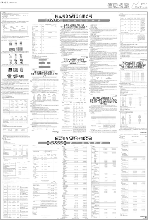 陈克明食品股份有限公司 (下转B192版)