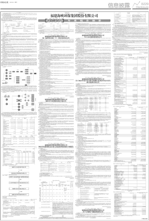 具体内容详见公司同日在上海证券交易所网站披露的《福建海峡环保集团股份有限公司2021年年度报告》及《福建海峡环保集团股份有限公司2021年年度报告摘要》。
