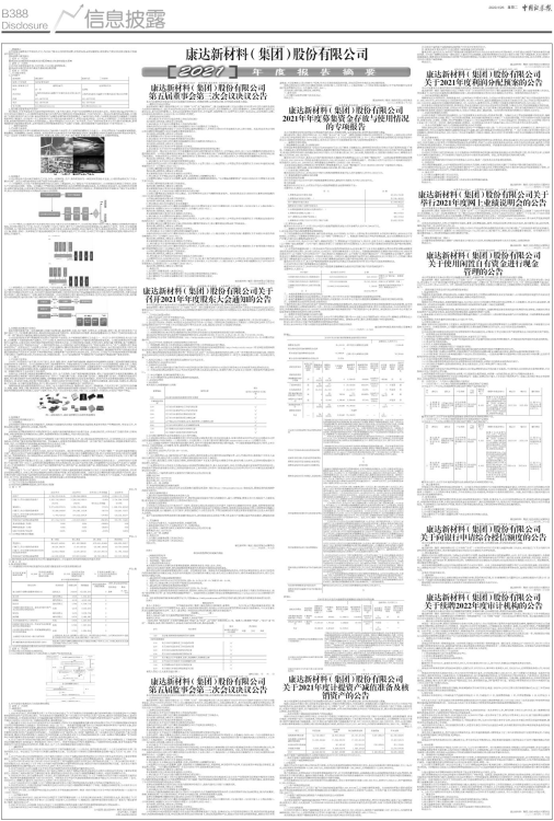 康达新材料(集团)股份有限公司(以下简称“公司”或“康达新材”)第五届董事会第三次会议通知于2022年4月12日以邮件及通讯方式向公司董事发出。会议于2022年4月22日上午9:30以通讯表决方式召开,应出席董事9人,实际出席董事9人,其中9名董事以通讯方式参加会议,参与表决的董事9人。本次会议由董事长王建祥主持,公司监事、高级管理人员、保荐代表人列席了本次会议,会议的通知、召集、召开和表决程序符合《公司法》及《公司章程》的规定。