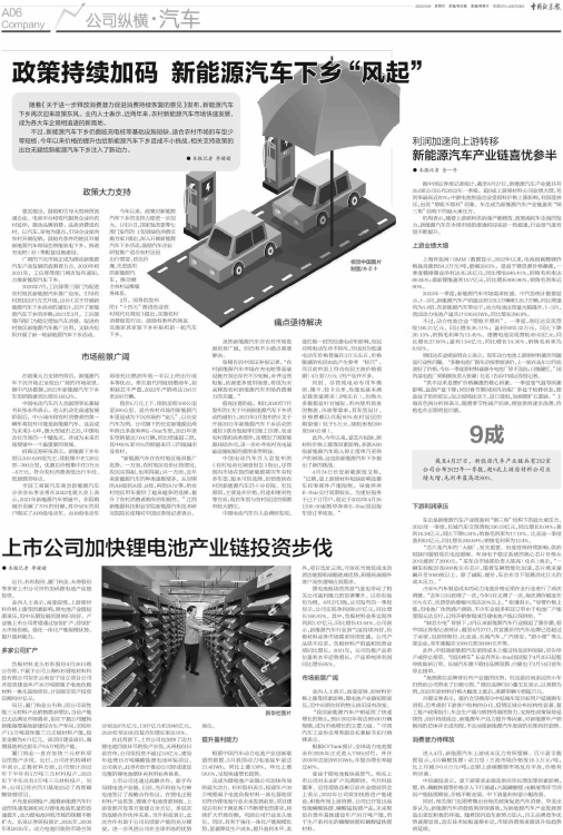 广阔的下沉市场正成为推动新能源汽车产业发展的政策着力点。2020年和2021年,工信部等部门两次发布通知,力推新能源汽车下乡。
