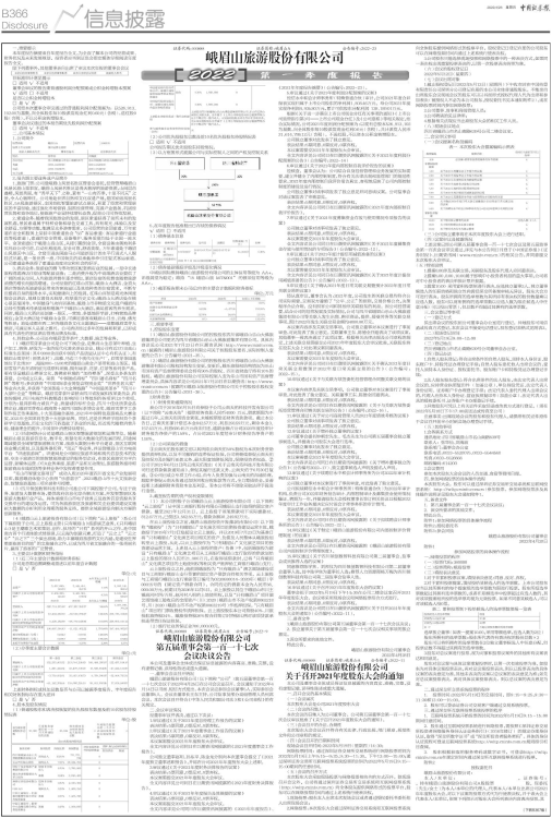 峨眉山旅游股份有限公司(以下简称“公司”)第五届董事会第一百一十七次会议于2022年4月25日在公司会议室召开。会议通知于2022年4月14日以书面、短信方式发出。本次会议应参加会议董事5人,实际参加会议董事5人。会议由董事长王东主持,公司监事及部分高级管理人员列席会议。本次会议召开符合《中华人民共和国公司法》和《公司章程》的有关规定。