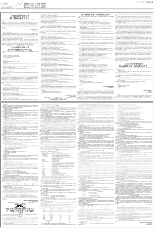 1、三全食品股份有限公司(以下简称“公司”)第八届董事会第一次会议通知于2022年4月29日以传真、电子邮件等方式通知全体董事、监事及高级管理人员。