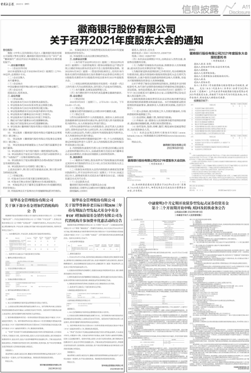 根据《中华人民共和国公司法》、《徽商银行股份有限公司章程》等有关规定,徽商银行股份有限公司(“本行”或“徽商银行”)拟召开2021年度股东大会。现将有关事项通知如下: